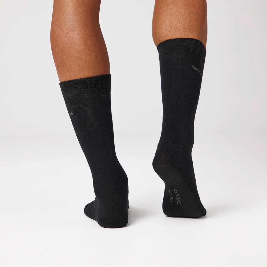 Machen wir uns nichts vor, klassische Business-Socken gehören zu den Dingen, über die wir uns nicht viele Gedanken machen wollen. Wenn du uns da zustimmst, findest du bei uns das perfekte Paar für deinen Alltag. Denn unsere Business-Socken lassen sich bis knapp unters Knie ziehen, und dort bleiben sie den ganzen Tag. Du ziehst vielleicht mit deiner Arbeit alle Blicke auf dich, aber sicher nicht mit rutschenden Socken oder einem Stück Haut, das unterm Anzug hervorblitzt. Der Materialmix aus Bio-Baumwolle, recyceltem Polyester, Polyamid und Elasthan ist aber nicht nur formbeständig, sondern auch gemütlich. Die einzigen Gedanken, die du dir bei unseren Business-Socken machen musst: Welche Farbe wählst du?